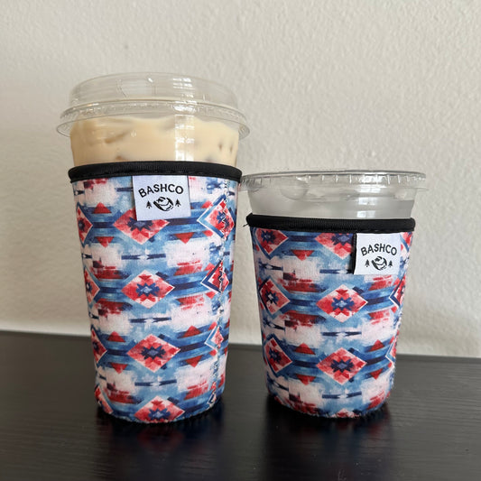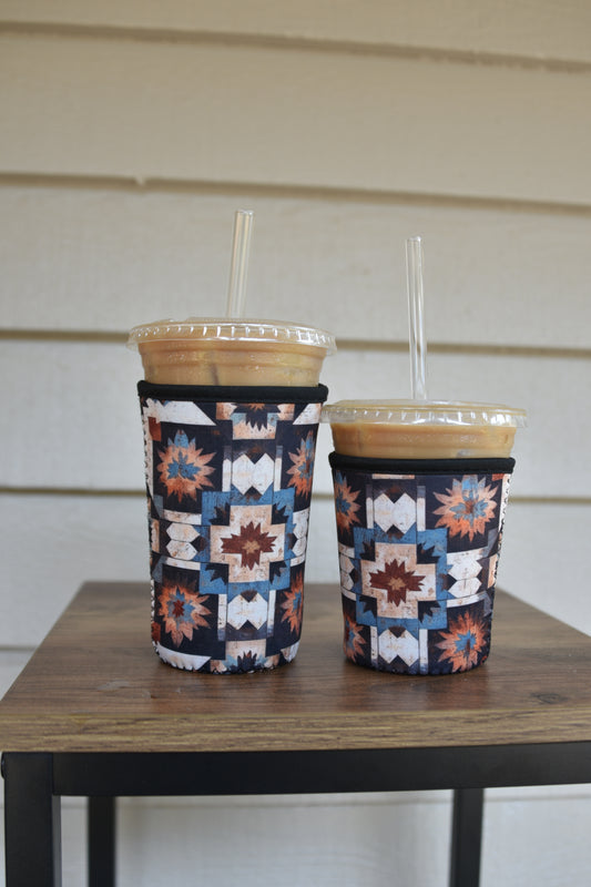 Southwestern Quilt Aztec Coffee Sleeve | Reusable Neoprene Iced Coffee Cup Cover (16–24oz)