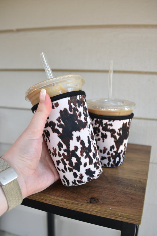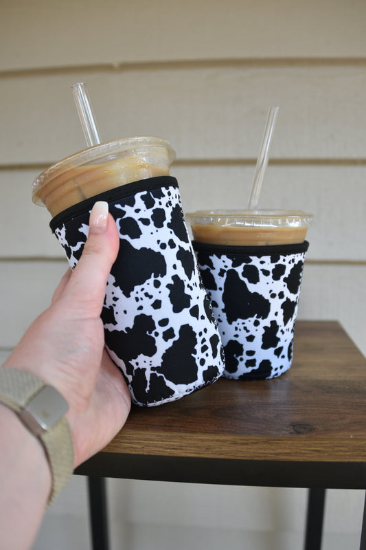 Cow Print Coffee Sleeve | Reusable Neoprene Iced Coffee Cup Cover (16–24oz)