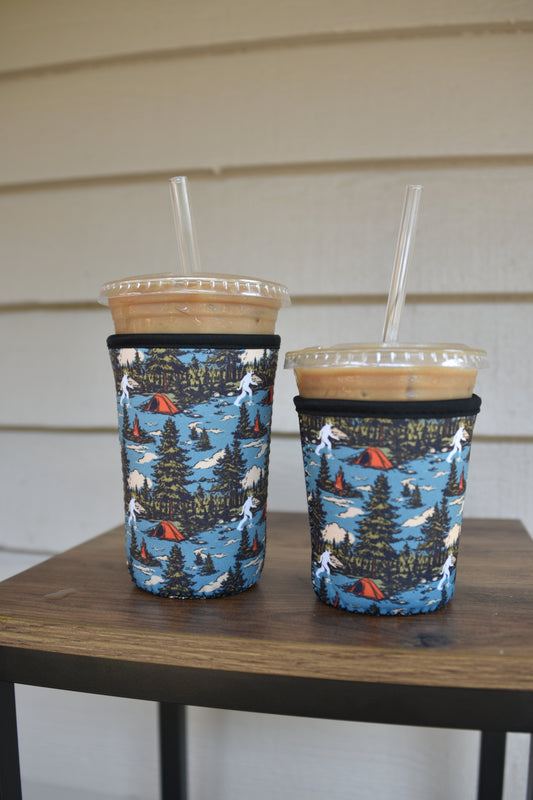 Bigfoot Camping Coffee Sleeve | Reusable Neoprene Iced Coffee Cup Cover (16–32oz)