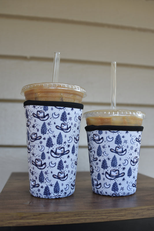Cowboy Hat & Stars Coffee Sleeve | Reusable Neoprene Iced Coffee Cup Cover (16–24oz)