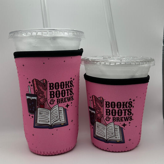 Books Boots and Brews Iced Coffee Cover | Iced Coffee Koozie