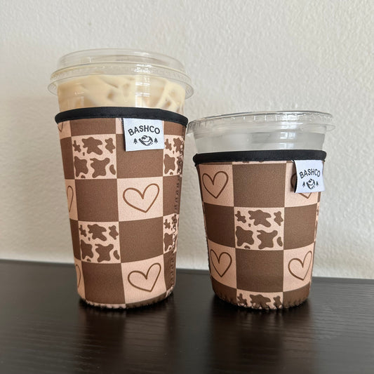Cow Hearts Checkered Coffee Sleeve | Western Coffee Koozie