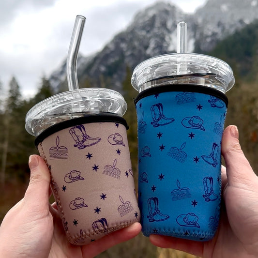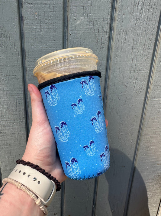 Blue Cowboy boots patterned Iced Coffee Cover | Iced Coffee Koozie