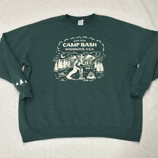 Camp BASH Bigfoot Evergreen Crewneck Sweatshirt – PNW Sasquatch Camping Graphic