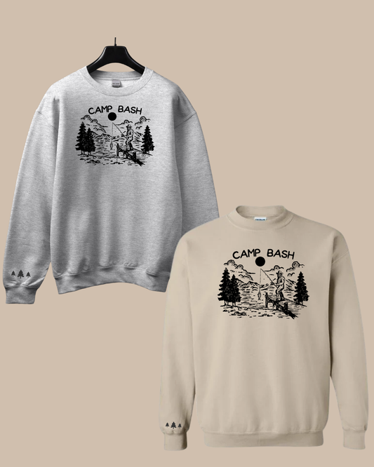 Camp BASH Bigfoot Evergreen Crewneck Sweatshirt – PNW Sasquatch Camping Graphic