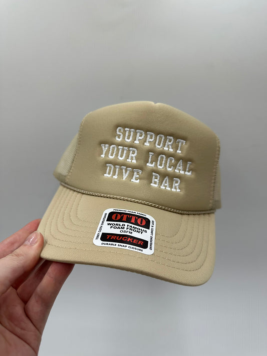Support your local dive bar embroidered trucker hat!