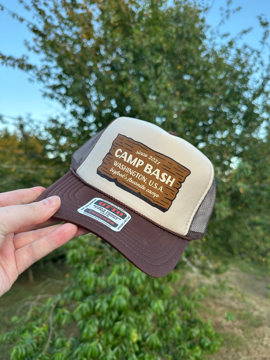 Camp BASH Bigfoot Otto Trucker Hat – PNW Snapback Cap (Multiple Colors)
