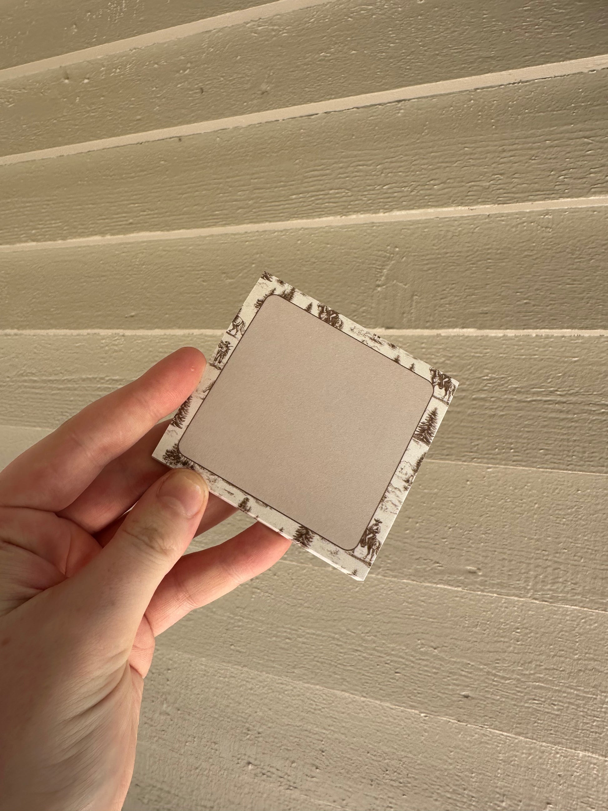 Add a little Western flair to your desk with the Golden Cowboy Print sticky notes. Featuring a rustic cowboy and pine tree border in warm golden tones, this custom notepad blends classic Western charm with everyday function. Perfect for jotting reminders, to-do lists, or little love notes that stand out with style.