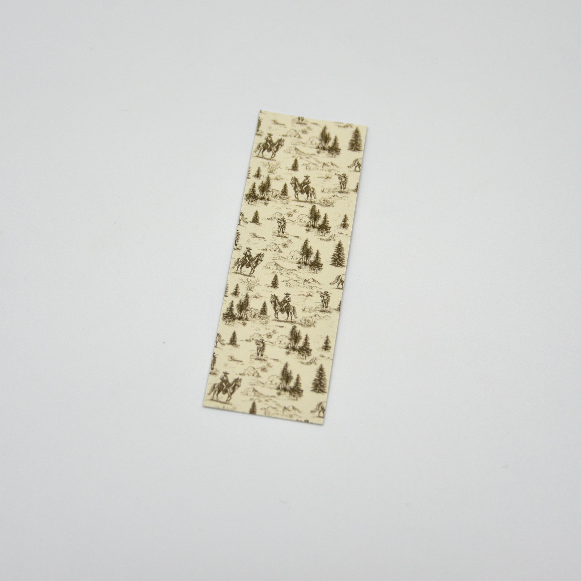 Ride into your next read with the Golden Cowboy bookmark — a vintage Western design featuring detailed cowboy and rodeo scenes set against a warm, rustic background. Perfect for lovers of cowboy culture, country living, and timeless Western style. Printed in vivid full color on durable 16pt stock with a glossy front and silky matte back, this bookmark combines quality with cowboy charm.