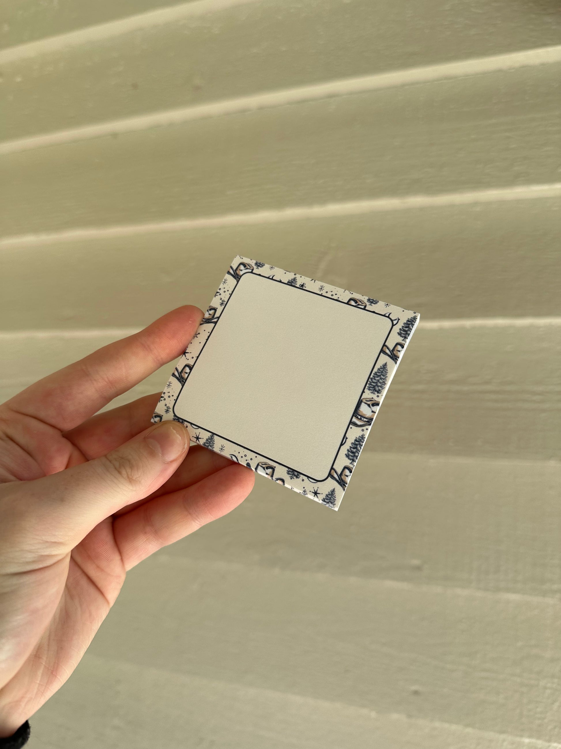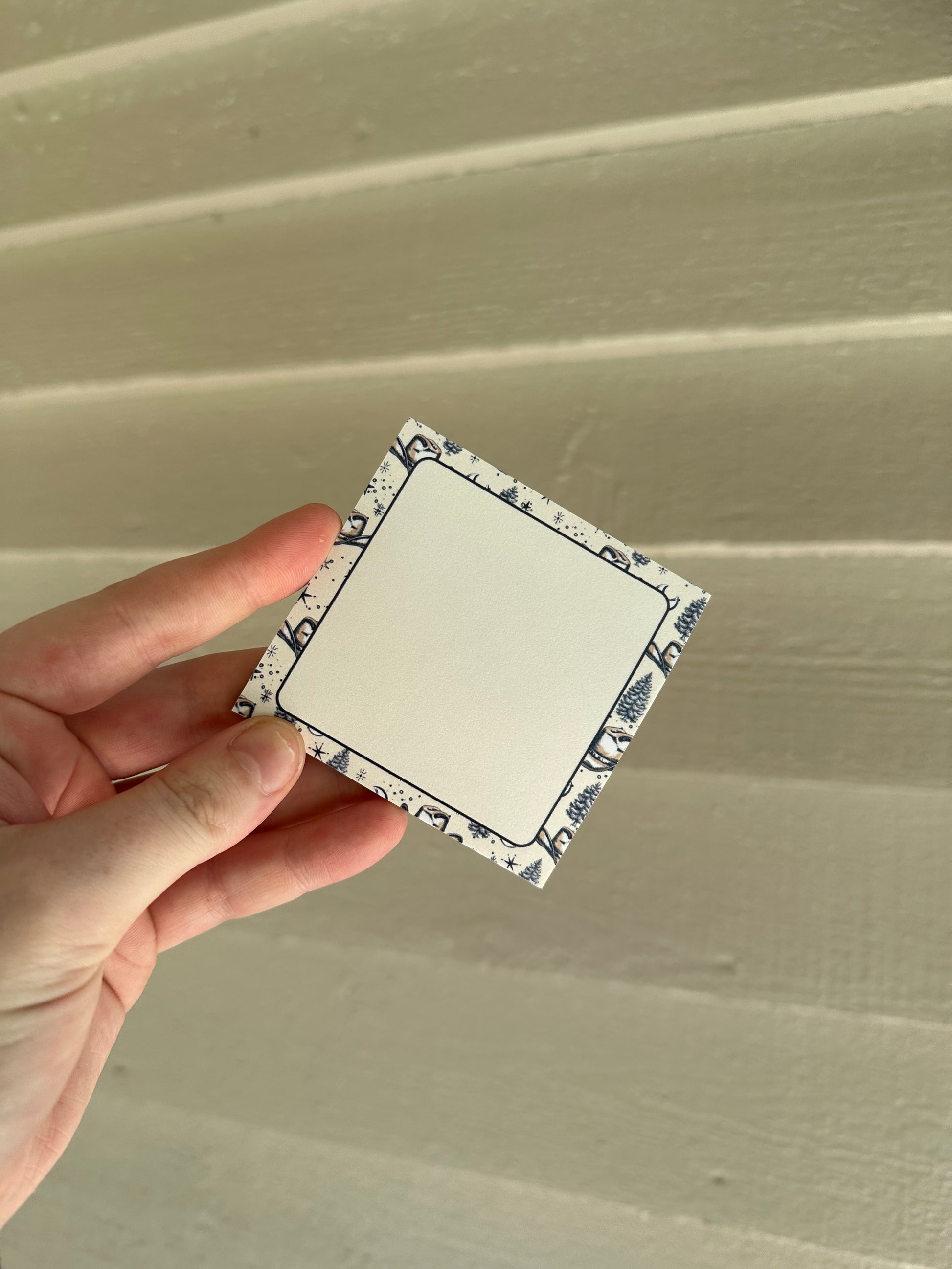 Add a dash of Western night-sky magic to your desk with the Midnight Cowboy Print sticky notes. Designed with a navy and cream border featuring cowboy hats, pine trees, stars, and crescent moons, this notepad blends rustic cowboy charm with celestial flair. Perfect for daily reminders, creative notes, or planner pages that need a little Western touch.