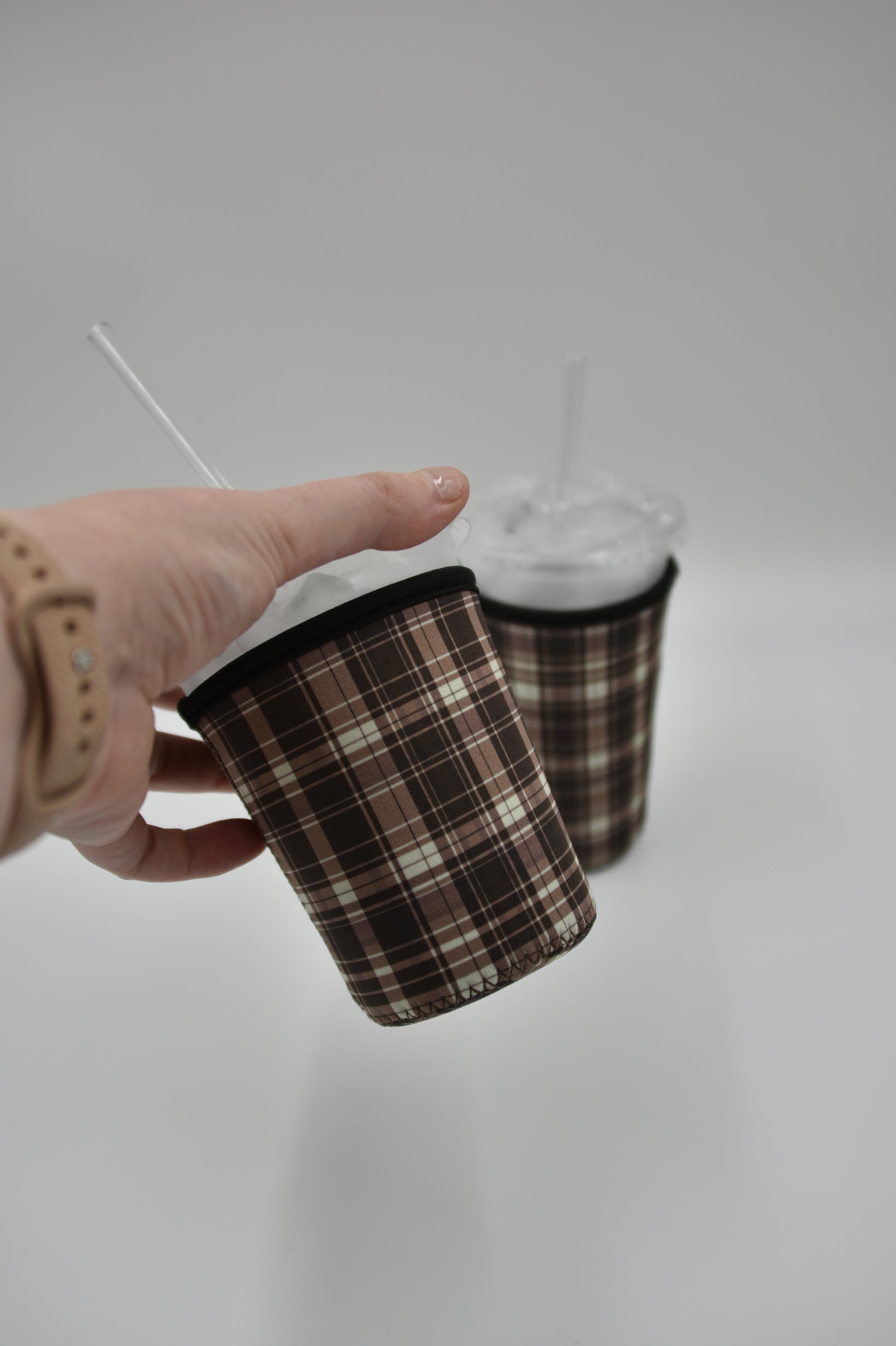 Plaid Coffee Sleeve | Reusable Neoprene Iced Coffee Cup Cover 16-24oz Cowboy Print Eco-Friendly Insulator for Grande & Venti Cups