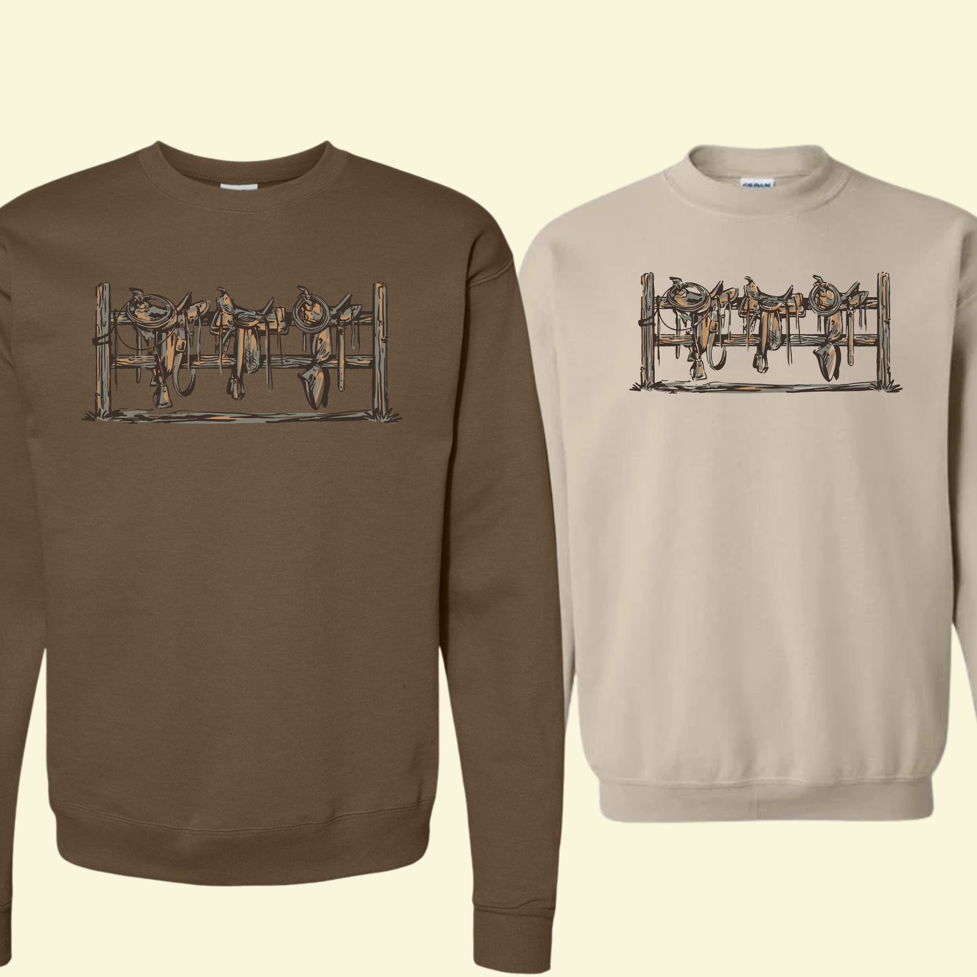 Saddles Up Colored Crewneck - Western Tack Sweatshirt